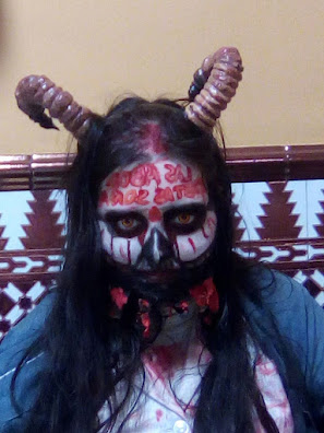 Desde el año 2011, mi hija se tomó en serio lo de los disfraces de Halloween y comenzó a disfrazarse de un modo más profesional e incluso hicimos varios complementos para los disfraces que luego enumeraremos. Alguno está en venta, como el hijo del Diablo, del que más abajo pondré la foto y ahora pondré su enlace de venta. Si clikáis en la palabra "venta", se os abrirá un enlace en una ventana aparte donde podréis ver este artículo. Se disfrazó hasta el año 2020, ya que el año 2021 fué año de pandemia y ahora esperamos el Halloween 2022.